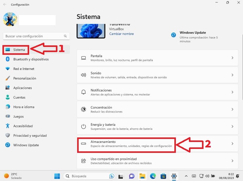 - Dentro de «Sistema» seleccionamos «Almacenamiento».